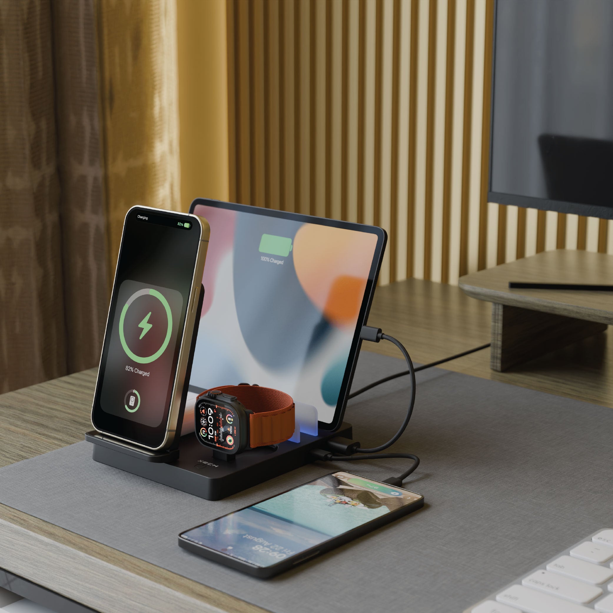 Wirelessly power your smartphone, earbuds (3W), and smartwatch (2W), plus charge 2 more devices using USB-C & USB-A ports (5W each).