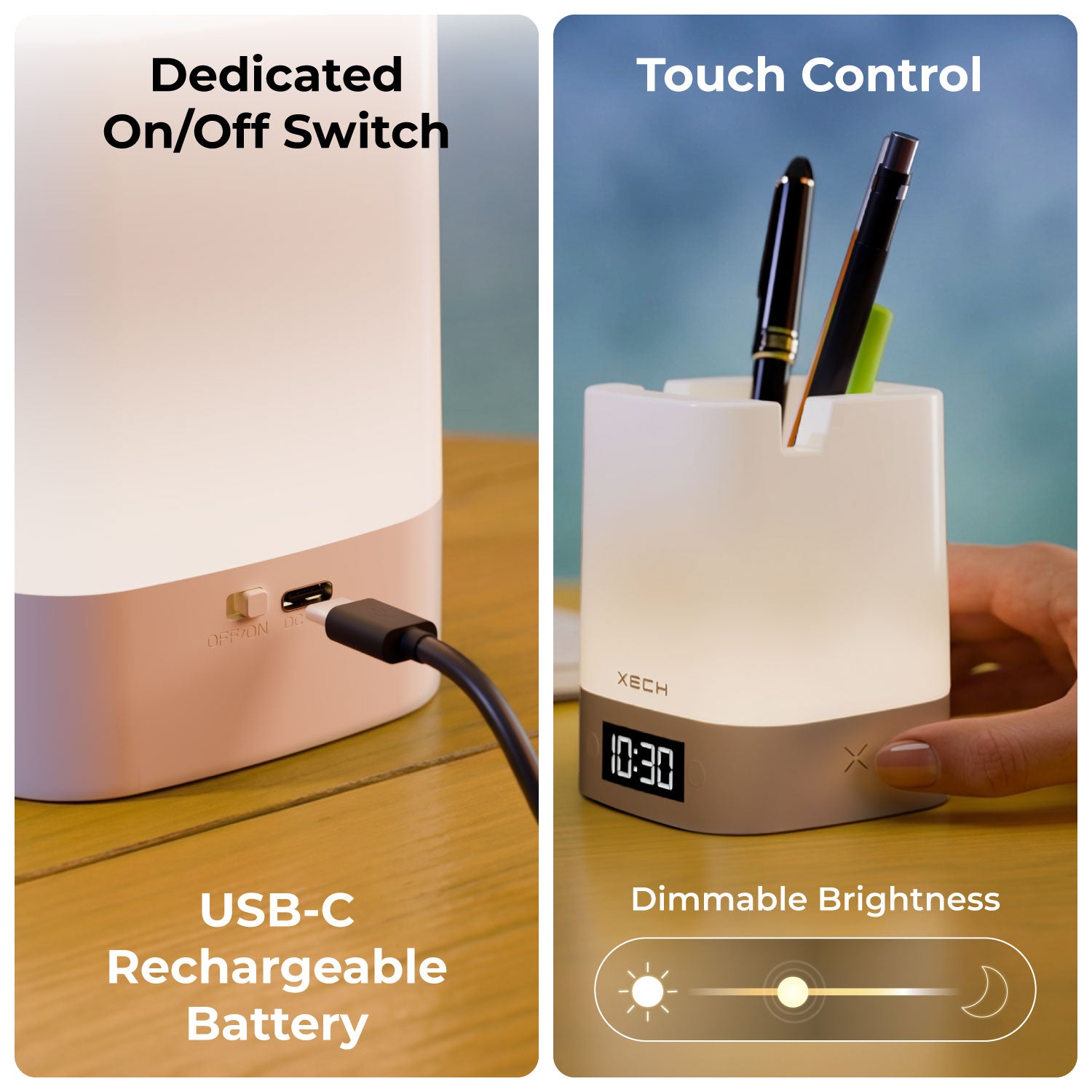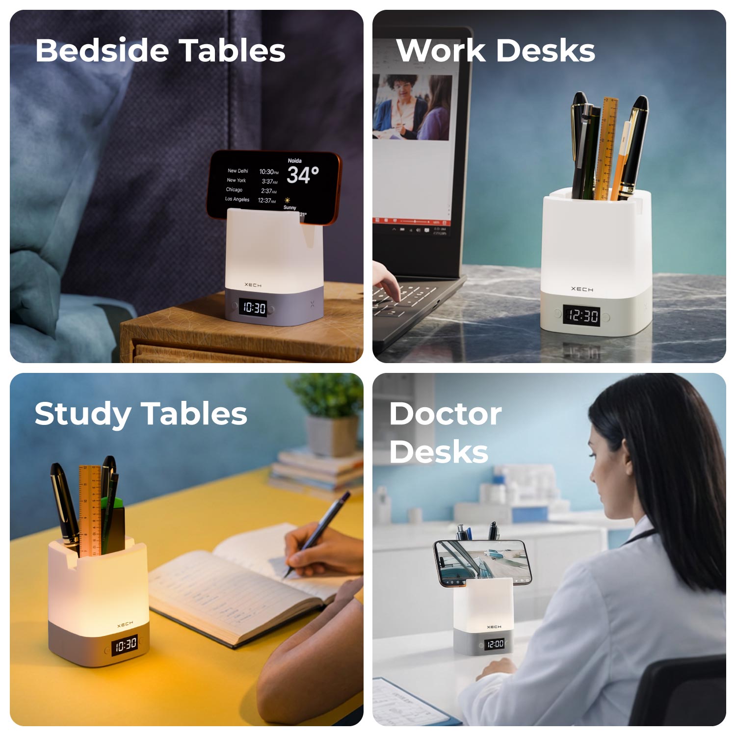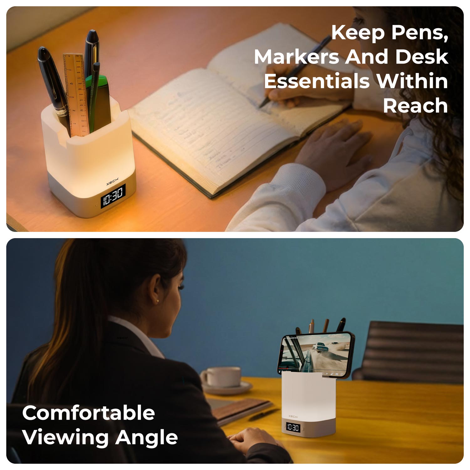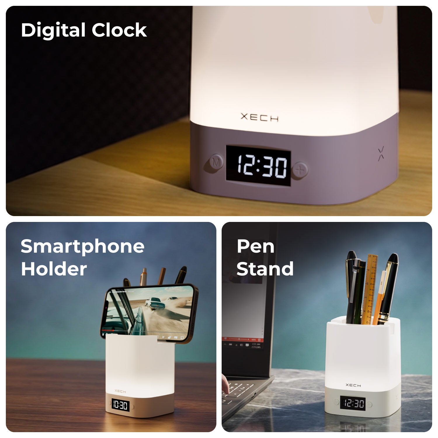 Nova Digital is a modern, multifunctional desk clock designed to upgrade your workspace. It features a soothing LED ambient lamp with 3 lighting modes, touch control with adjustable brightness, and a rechargeable in-built battery. Doubling as a pen stand and phone holder, Nova Digital helps keep your desk organised while adding a warm, aesthetic glow.