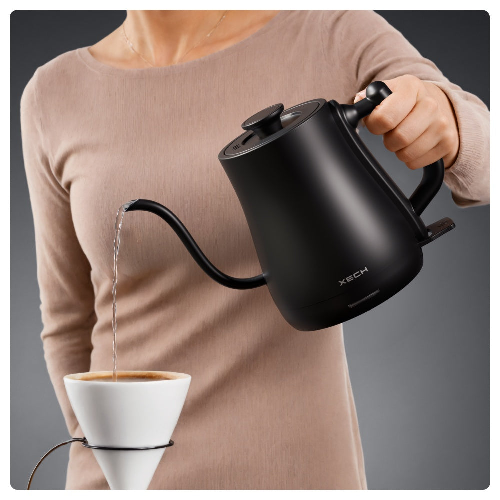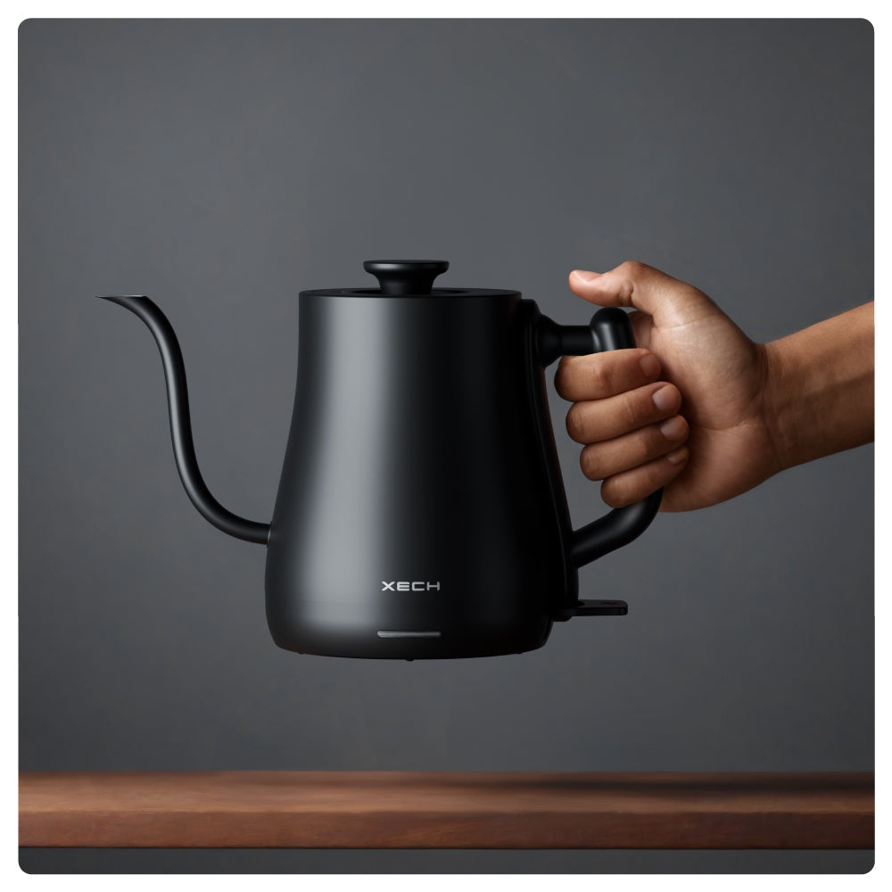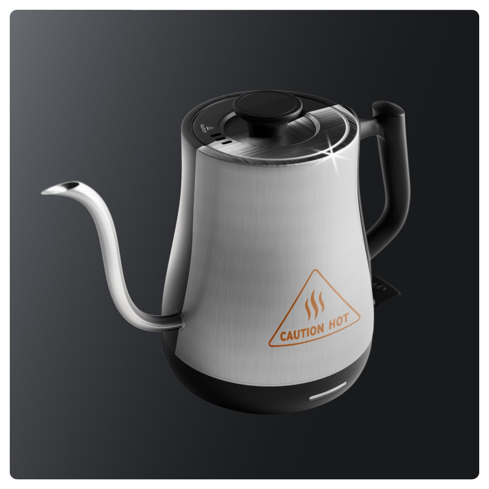 The ideal hot water tea kettle for pour-over coffee lovers and tea enthusiasts. Featuring a 1L stainless steel body, controlled flow spout, and a counterbalanced handle, this water boiler is perfect for modern kitchens, offering precise brewing and rapid heating for your daily needs.