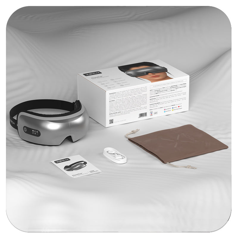 The iSoothe Eye Massager employs a custom Shiatsu massage script, which gently targets key pressure points around the eyes. This script combines heat, vibration, and air pressure, stimulating healthy blood circulation, reducing muscle tension, and invoking relaxation.