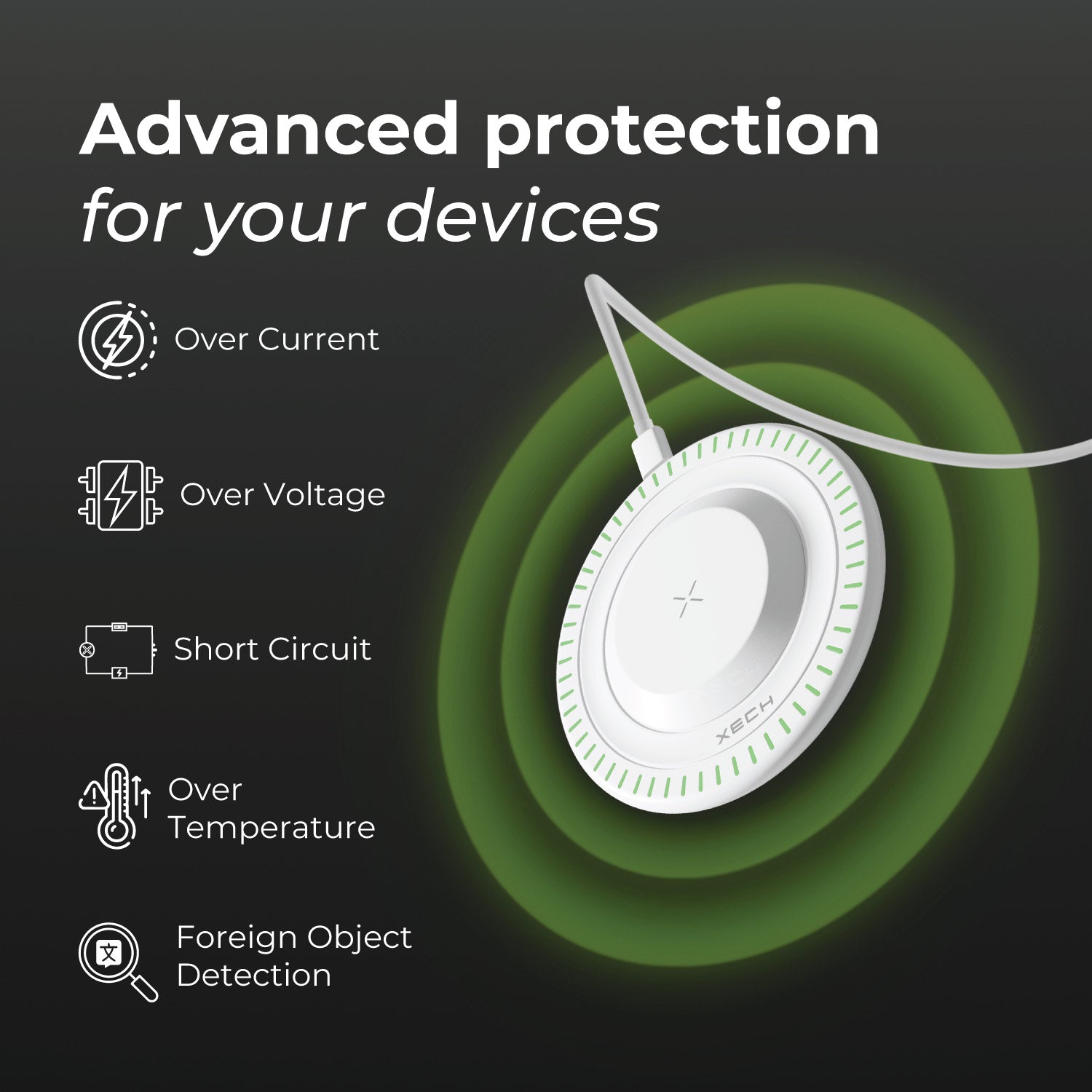 XECH Powerbase is a super slim 15W fast wireless charger for your qi-enabled devices. Its circular spaceship design comes with embedded LEDs which light up when you place your phone on top of it. It comes with optimal power delivery, meaning it will auto-detect the qi-enabled device to deliver power. It comes with a host of advanced protections to keep your devices safe.