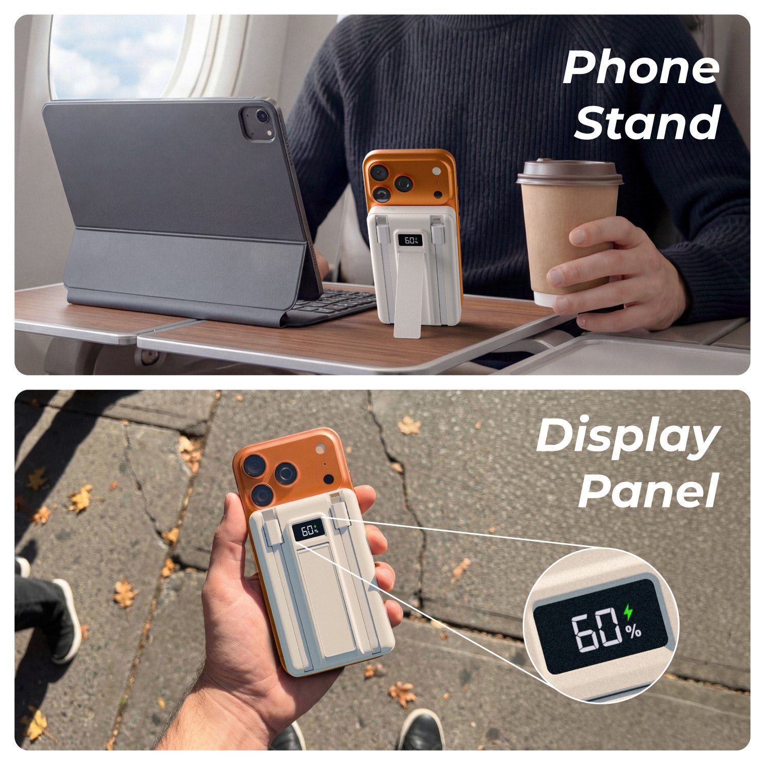 Kickstand Holder: Rear kickstand transforms the powerbank into a hands-free phone stand.