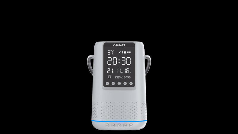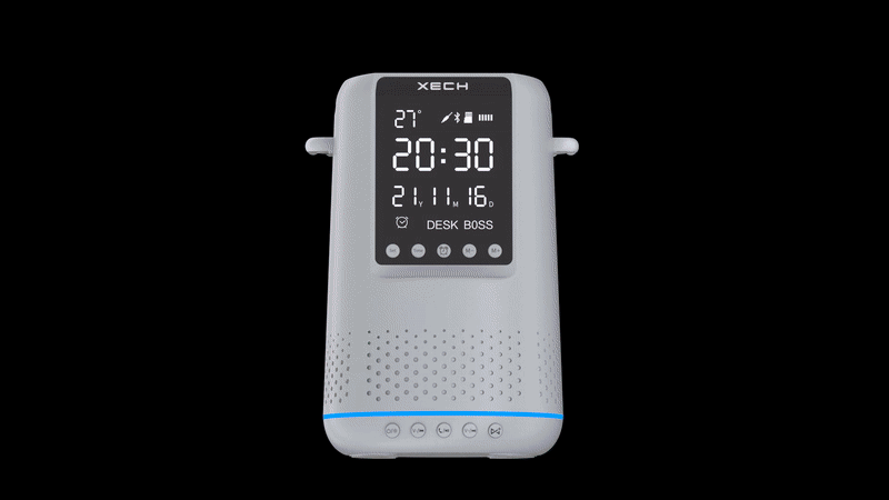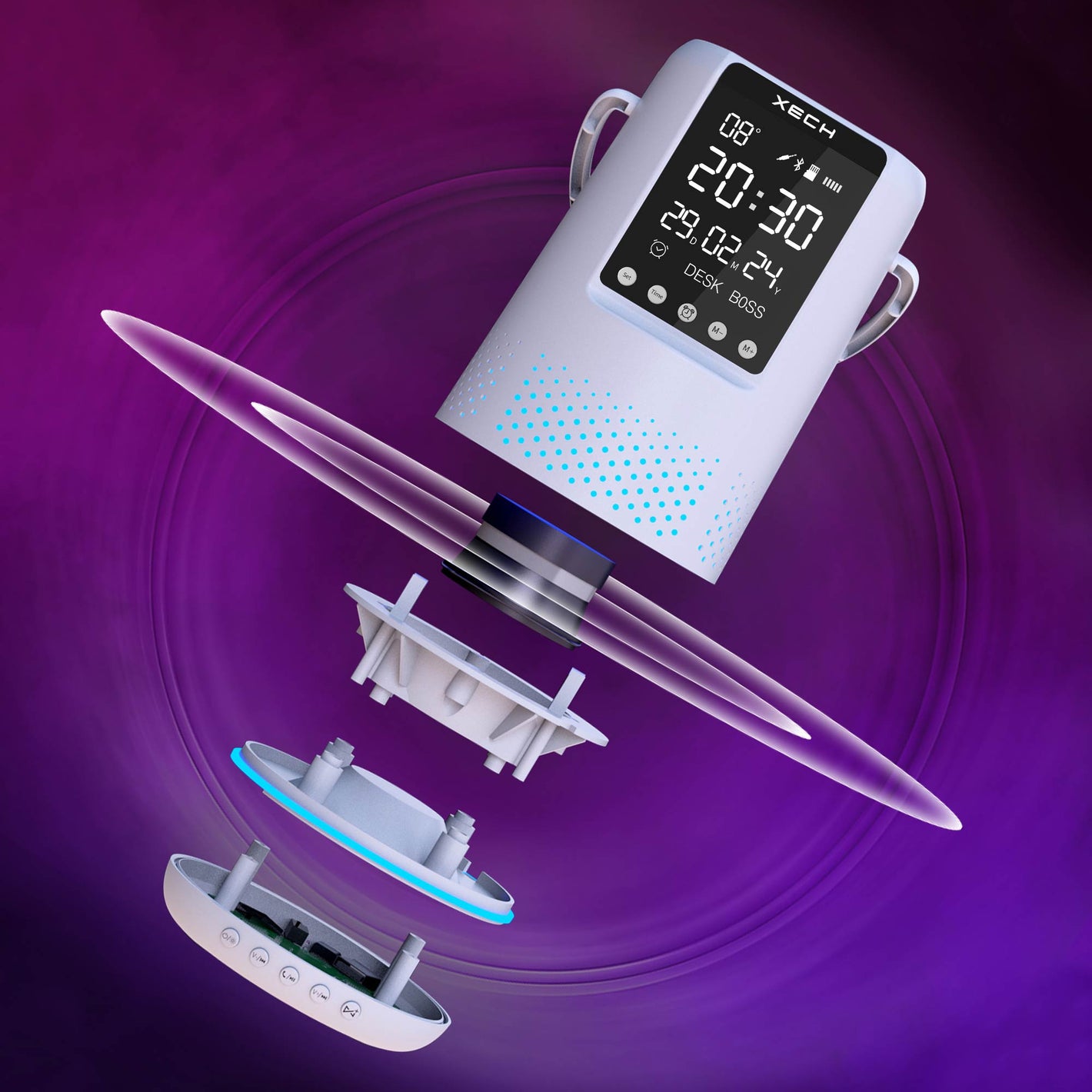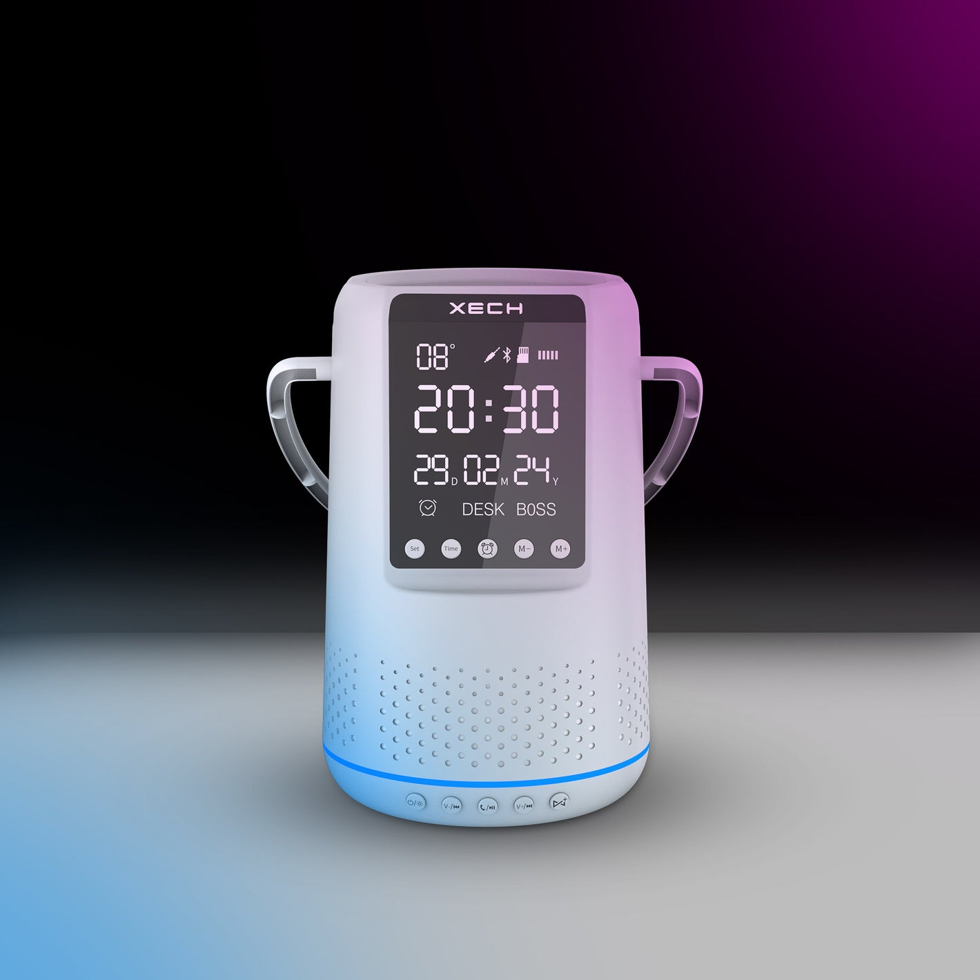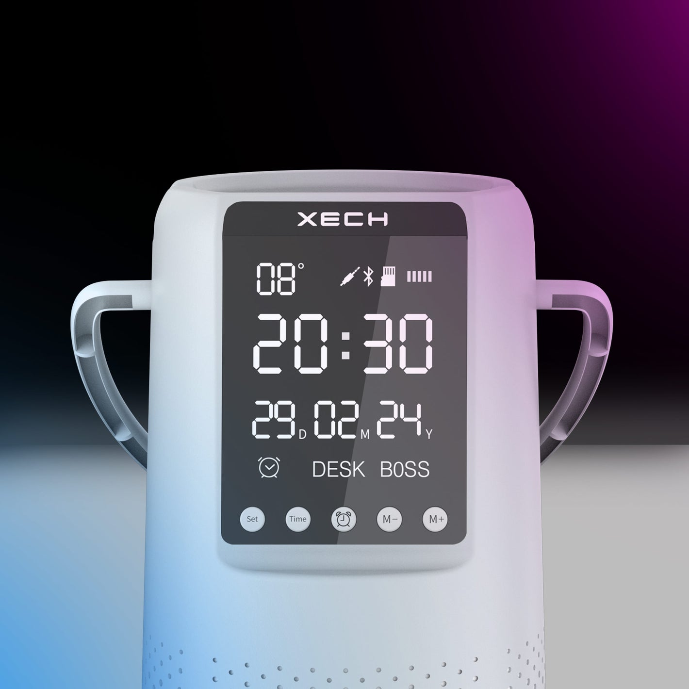 XECH Desk Boss is a multifunctional Bluetooth speaker with a phone holder. It also features a mirror finish digital clock with alarm & ambient temperature. It also has colour-changing RGB lights located at the base of the speaker to keep the good vibes up, always!