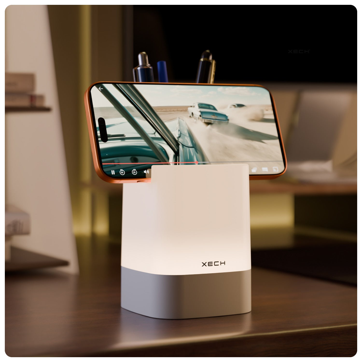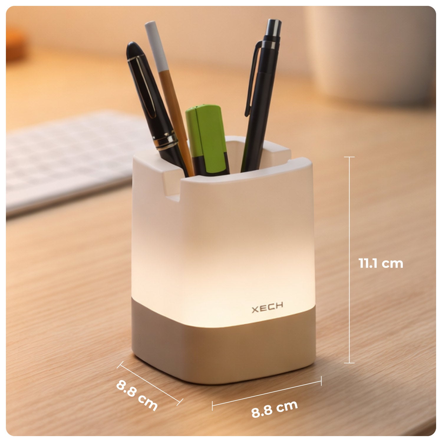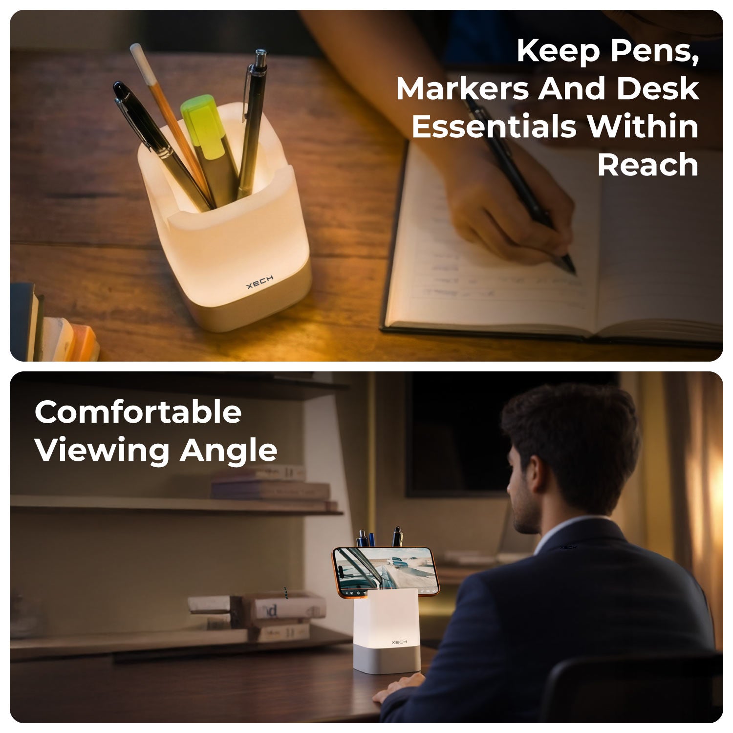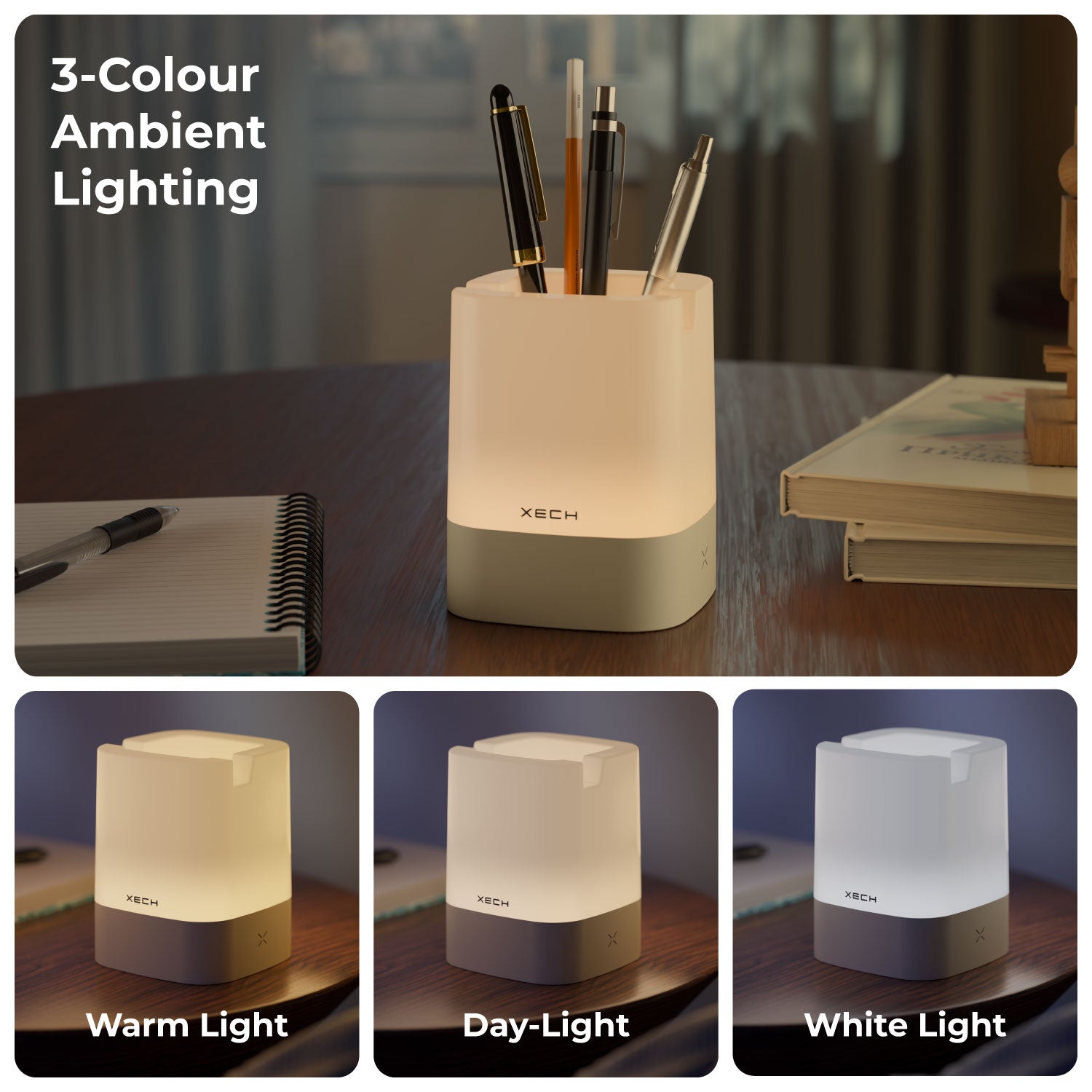 Upgrade your desk with a multifunctional LED ambient lamp that combines lighting, organisation, and phone support in one sleek design. Featuring 3 colour lighting modes, adjustable brightness, and touch controls, this pen stand keeps your stationery organised while providing a comfortable phone viewing angle. Rechargeable and compact, it’s perfect for work desks, study tables, and bedside use.