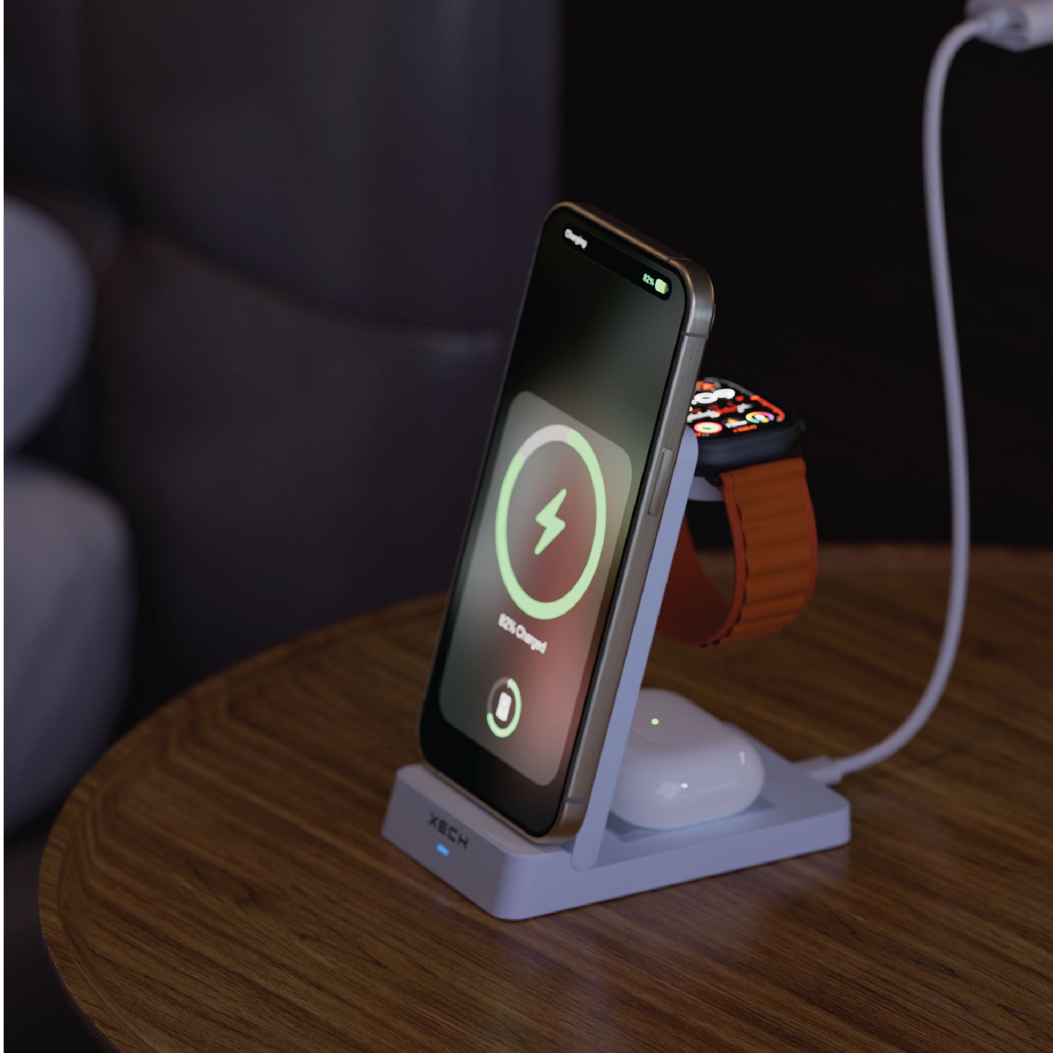 3-in-1 Wireless Charging Hub – Power your smartphone, earbuds & smartwatch simultaneously with one sleek base.