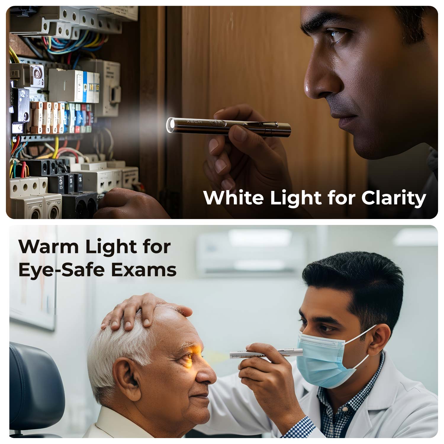 Dual LED Light: White for clarity, warm for eye-safe exams.