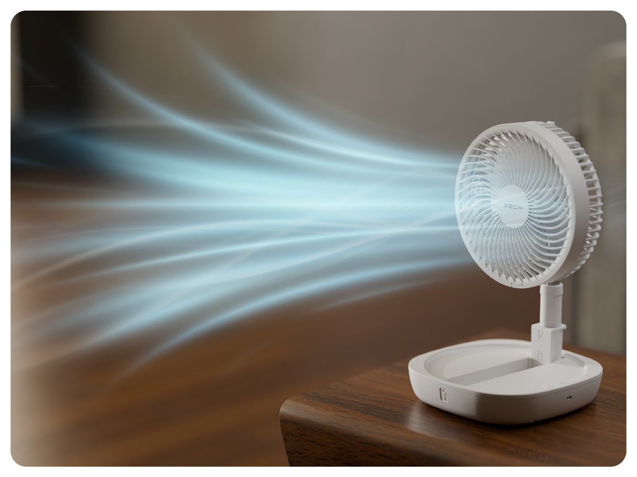 High-speed cooling, ultra-quiet performance, and effortless portability. Experience a rechargeable table fan designed for every space—home, office, bedside, and beyond. Compact, foldable, and powerful, it delivers personalized airflow.