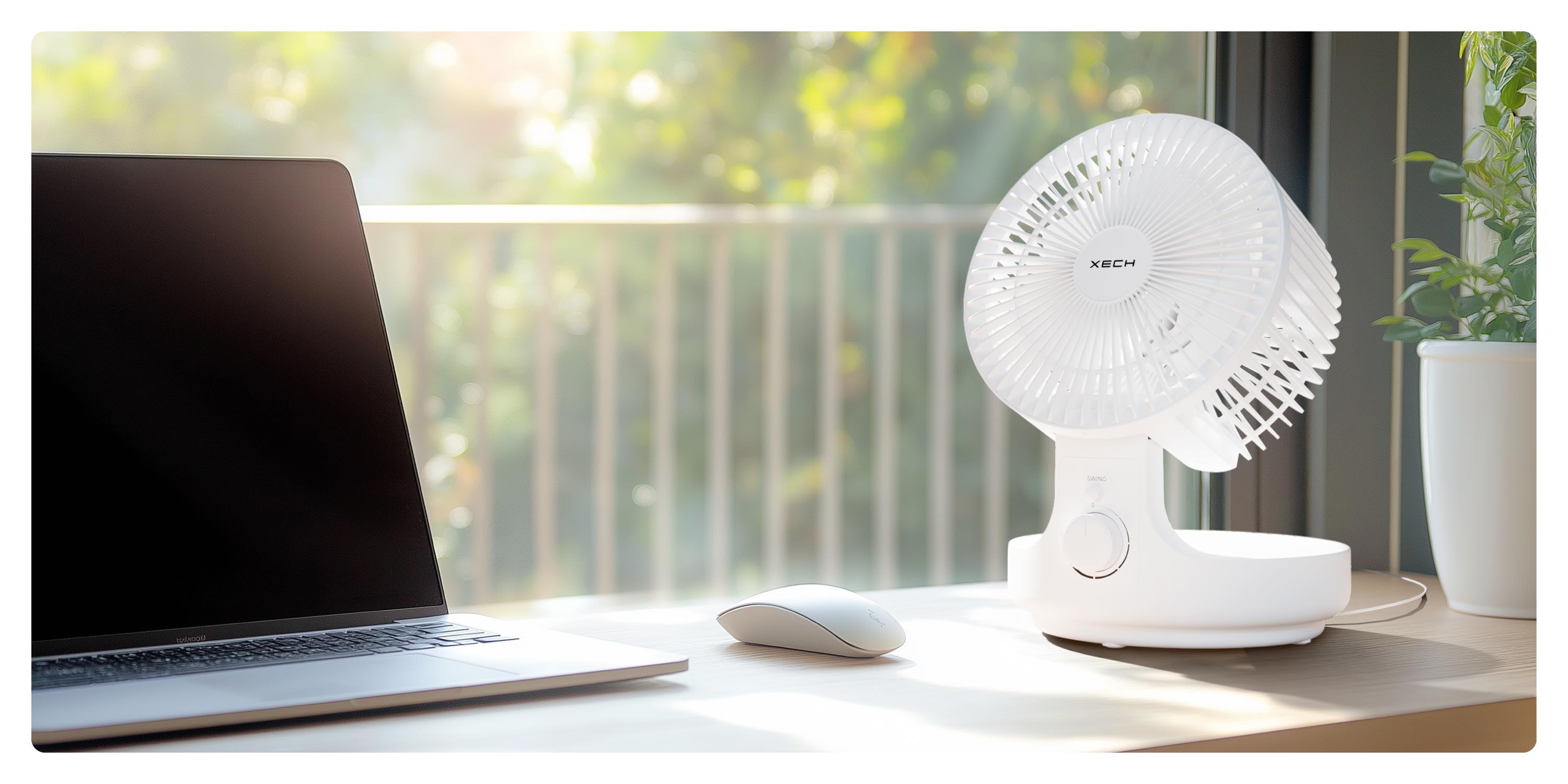 Featuring a compact, lightweight build, this fan is perfect for moving between rooms. Whether in the bedroom, kitchen, or study, enjoy easy portability and convenient cooling.