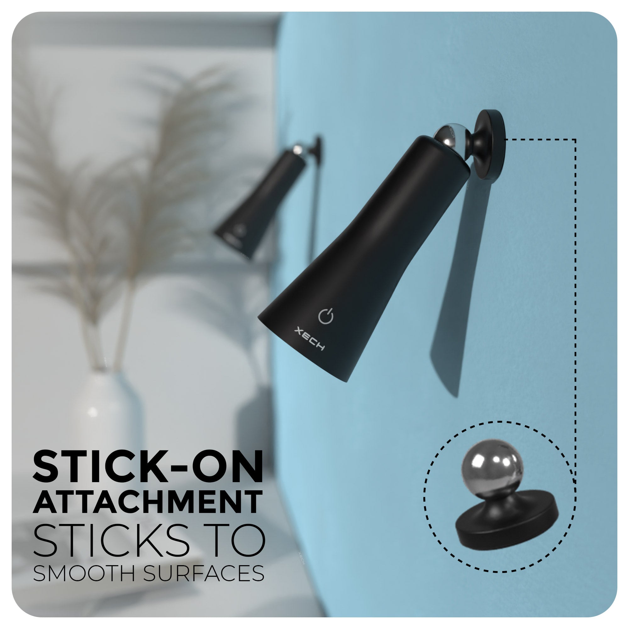 This attachment allows you to stick Magneto onto smooth surfaces like glass, wood, or tiles, giving you a portable spotlight or reading light that you can use wherever you need it.