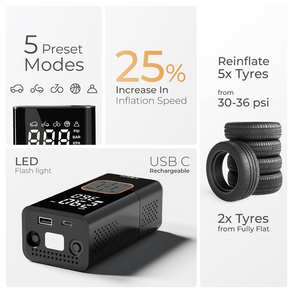 The XECH Cordless Tyre Inflator offers quick, efficient inflation up to 150 PSI. Designed for cars, bikes, motorcycles, and more, it's your go-to solution for everyday and emergency inflations.