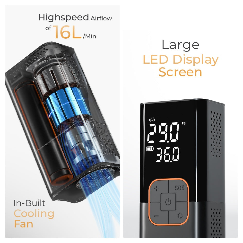 The digital display provides precise pressure readings for easy monitoring, while the inbuilt cooling fan ensures optimal performance even during extended use, preventing overheating.