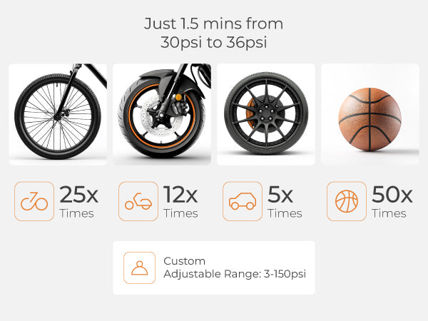 Experience super-fast inflation with up to 150 PSI. Preset your desired pressure, and let the inflator handle the rest. Recharge quickly with the USB-C port for constant readiness.