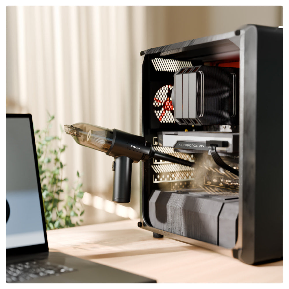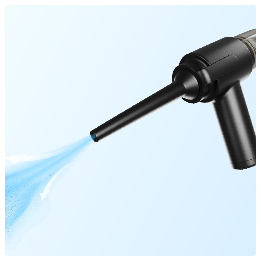 The 50,000 RPM blower generates high-speed air to blow away dust, debris, and particles from hard-to-reach areas, such as PC components and car vents.