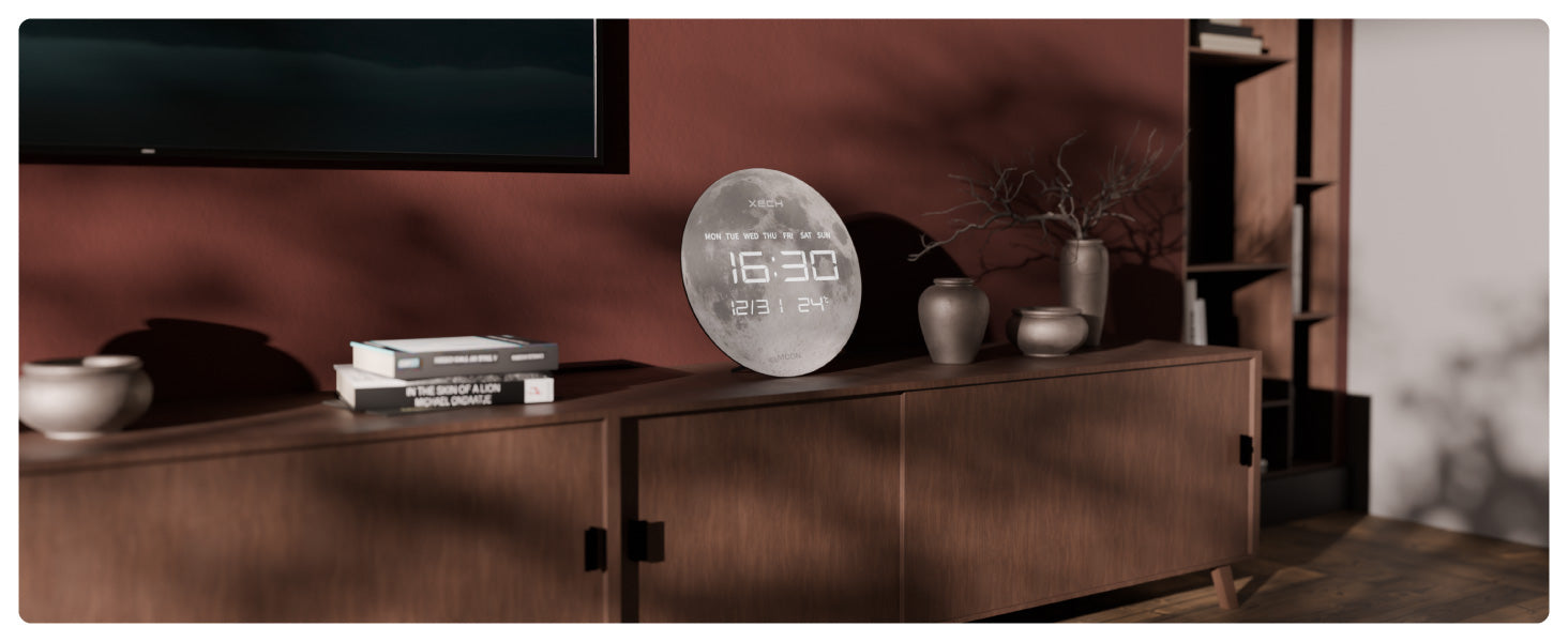 Solaris Plus LED Wall Clock offers versatile functionality for any space. Ideal for living rooms, bedrooms, and office desks, it shows day, date (MM/DD), time, and temperature in an elegant design